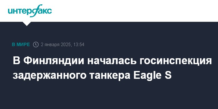 Москва. 2 января. INTERFAX.RU - Агентство транспорта и коммуникаций Финляндии Traficom приступило в четверг к проведению государственной инспекции танкера Eagle S, подозреваемого в повреждении эстонско-финляндского электрокабеля EstLink 2.