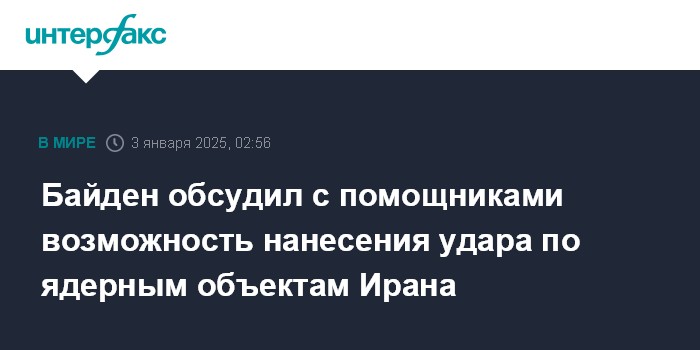 Москва. 3 января. INTERFAX.RU - Президент США Джо Байден обсуждал представленный ему помощниками план нанесения ударов по ядерным объектам Ирана, сообщил портал Axios со ссылкой на источники.