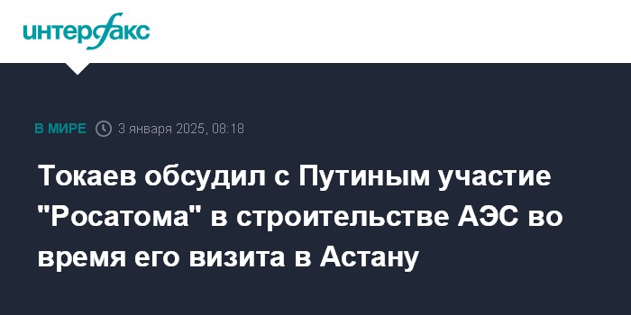 "Речь шла о возможном участии компании "Росатом", обладающей высокими компетенциями и богатым опытом строительства атомных станций за рубежом", - сказал Токаев в интервью республиканской газете "Ана тiлi" ("Родной язык"), говоря о переговорах с Путиным во время его визита в Астану в ноябре 2024 года.