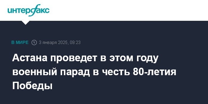 "Чествование 80-летия Великой Победы займет видное место в государственной повестке нынешнего года. (...) План празднования юбилея Победы достаточно насыщенный. Центральным событием станет военный парад в Астане", - сказал он в интервью республиканской газете "Ана тiлi" ("Родной язык").
