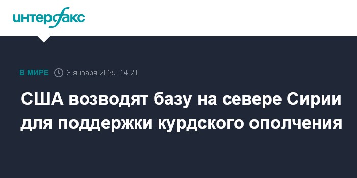 Москва. 3 января. INTERFAX.RU - США строят военную базу в районе города Кобани на севере Сирии в рамках поддержки союзных им Сил самообороны сирийских курдов (YPG), сообщает в пятницу Sabah со ссылкой на источники.