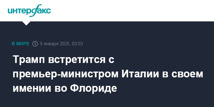По их данным, Трамп примет Мелони в своем имении Мар-а-Лаго вечером 4 января по местному времени.