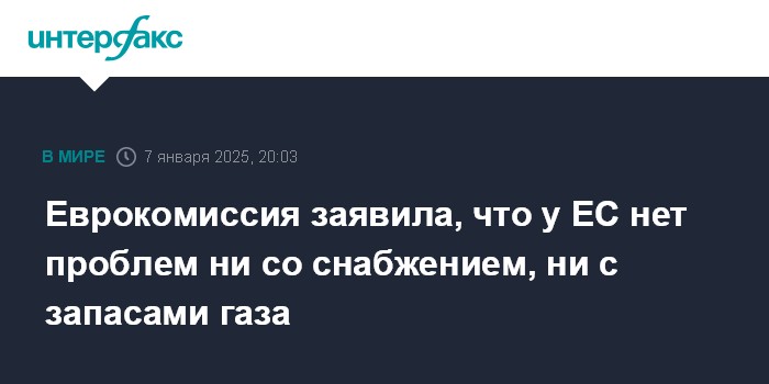 Еврокомиссия заявила, что у ЕС нет проблем ни со снабжением, ни с запасами газа