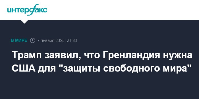Москва. 7 января. INTERFAX.RU - Избранный президент США Дональд Трамп считает, что Дания должна отказаться от Гренландии в пользу США, так как это необходимо для защиты национальных интересов Вашингтона.