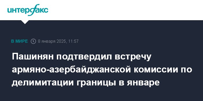 Москва. 8 января. INTERFAX.RU - Премьер-министр Армении Никол Пашинян подтвердил заявление президента Азербайджана Ильхама Алиева о готовящейся встрече комиссий по делимитации государственной границы между двумя странами.