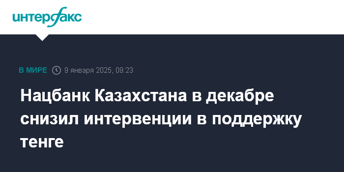 При этом центробанк не планировал проводить интервенции до конца 2024 года, если не будет резких изменений на валютном рынке. "(...) если не будет резких изменений, если не будет спекулятивных, необоснованных фундаментальными или рыночными факторами скачков, мы не планируем интервенции. Мы делаем это только в крайнем случае", - заявил председатель Нацбанка Казахстана Тимур Сулейменов в конце ноября.