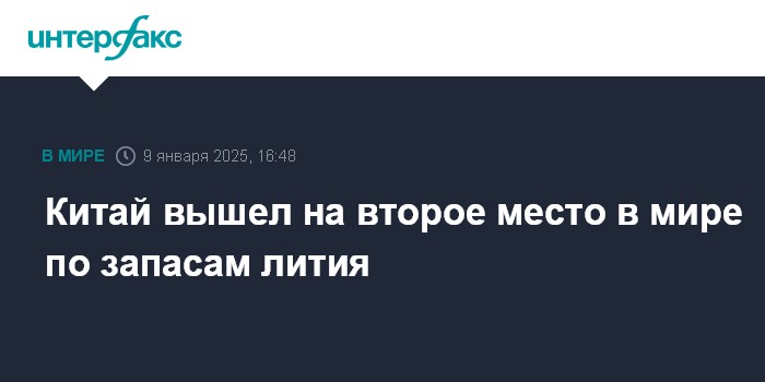 Китай вышел на второе место в мире по запасам лития