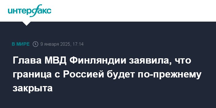 Глава МВД Финляндии заявила, что граница с Россией будет по-прежнему закрыта