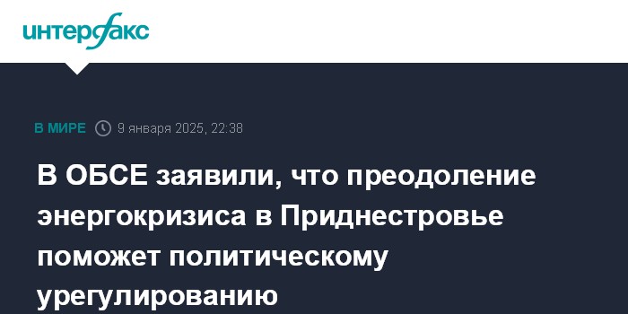 В ОБСЕ заявили, что преодоление энергокризиса в Приднестровье поможет политическому урегулированию