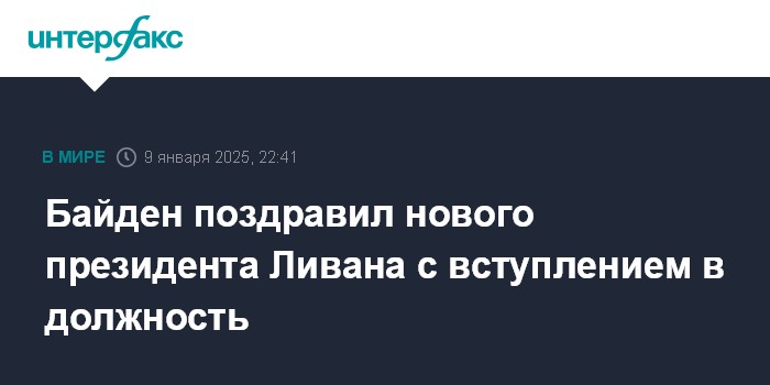 Москва. 9 января. INTERFAX.RU - Президент США Джо Байден в четверг приветствовал избрание Жозефа Ауна президентом Ливана и выразил надежду на восстановление страны после конфликта между ливанским шиитским движением "Хезболла" и Израилем.