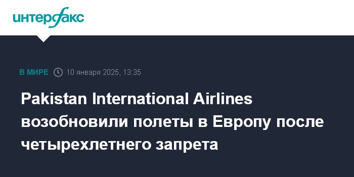 Москва. 10 января. INTERFAX.RU - Государственный авиаперевозчик Пакистана Pakistan International Airlines (PIA) возобновил прямые полеты в европейские страны после того, как Европейское агентство безопасности полетов (EASA) отменило действовавший четыре года запрет, сообщает AP.