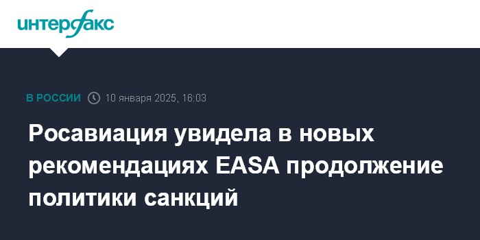Росавиация увидела в новых рекомендациях EASA продолжение политики санкций