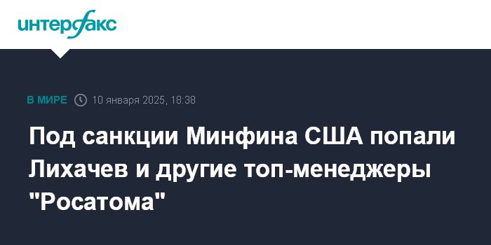Москва. 10 января. INTERFAX.RU - Гендиректор "Росатома" Алексей Лихачев и ряд других топ-менеджеров госкорпорации внесены в SDN List, говорится в опубликованном в пятницу релизе Минфина США.