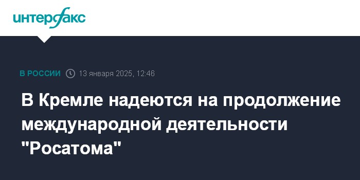 В Кремле надеются на продолжение международной деятельности "Росатома"