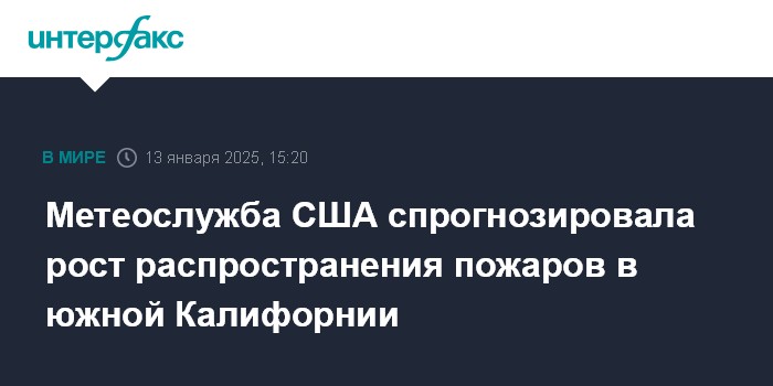 Москва. 13 января. INTERFAX.RU - Национальная метеорологическая служба США ожидает, что погодные условия на этой неделе в южной части штата Калифорния не улучшатся и будут способствовать распространению масштабных лесных пожаров, сообщает в понедельник телеканал NBC.