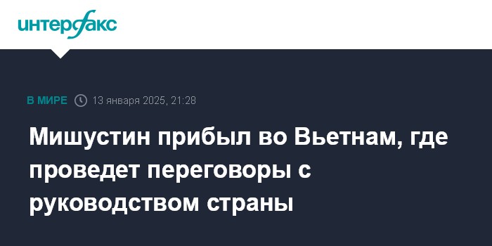 Москва. 13 января. INTERFAX.RU - Премьер-министр России Михаил Мишустин прибыл в Ханой, где в ближайшие два дня проведет переговоры с руководством Вьетнама.