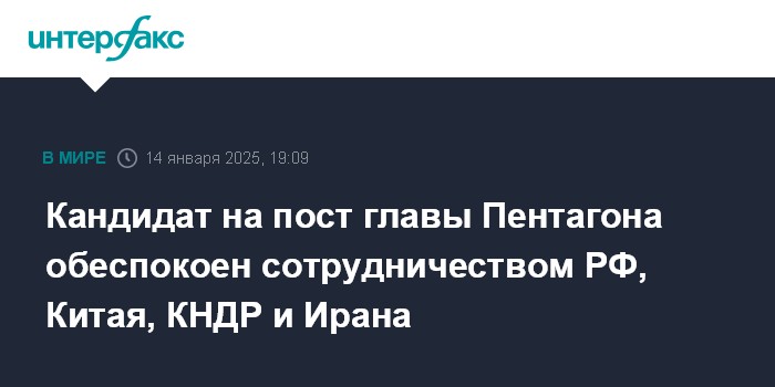 Кандидат на пост главы Пентагона обеспокоен сотрудничеством РФ, Китая, КНДР и Ирана