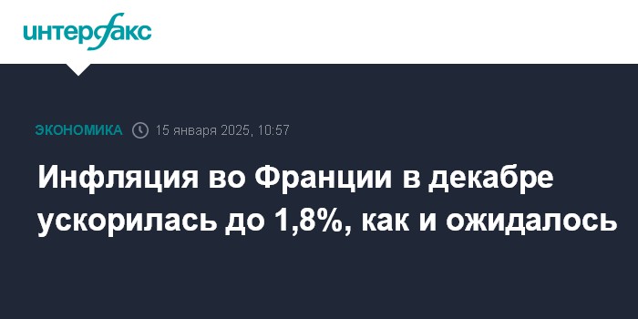 Инфляция во Франции в декабре ускорилась до 1,8%, как и ожидалось