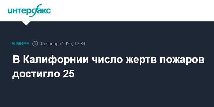 Москва. 15 января. INTERFAX.RU - В Калифорнии число погибших в результате масштабных лесных пожаров достигло 25, сообщает CNN.