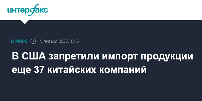 Москва. 15 января. INTERFAX.RU - В США в список производителей, импорт продукции которых запрещен в рамках закона о предотвращении принудительного труда уйгуров (UFLPA), включили еще 37 китайских компаний, сообщило министерство внутренней безопасности (DHS).