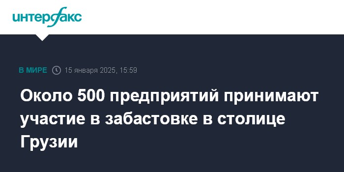 Москва. 15 января. INTERFAX.RU - Забастовка с требованием назначить новые парламентские выборы проходит в Тбилиси в среду, в числе бастующих - экс-президент Грузии Саломе Зурабишвили, сообщают грузинские оппозиционные телеканалы.