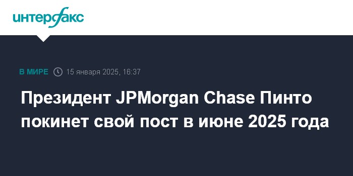 Москва. 15 января. INTERFAX.RU - Президент и главный операционный директор JPMorgan Chase & Co. Дэниел Пинто покинет свои посты 30 июня 2025 года.