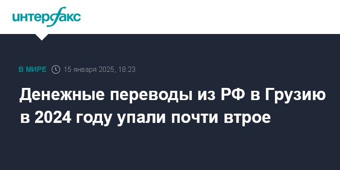 Москва. 15 января. INTERFAX.RU - Денежные переводы в Грузию из РФ в 2024 году упали в 2,8 раза до $541 млн. Таковы статданные, опубликованные Нацбанком Грузии.