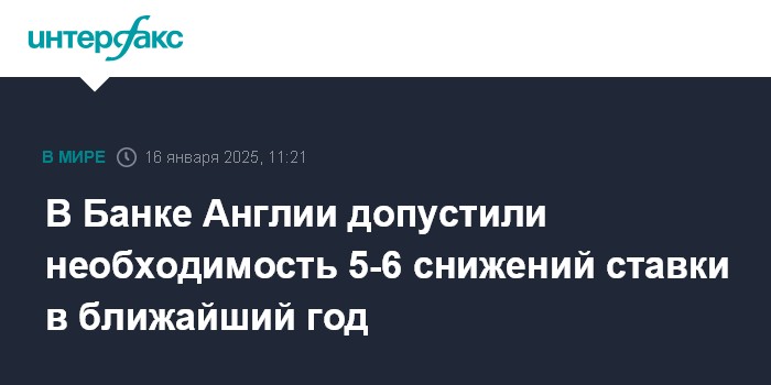 В Банке Англии допустили необходимость 5-6 снижений ставки в ближайший год