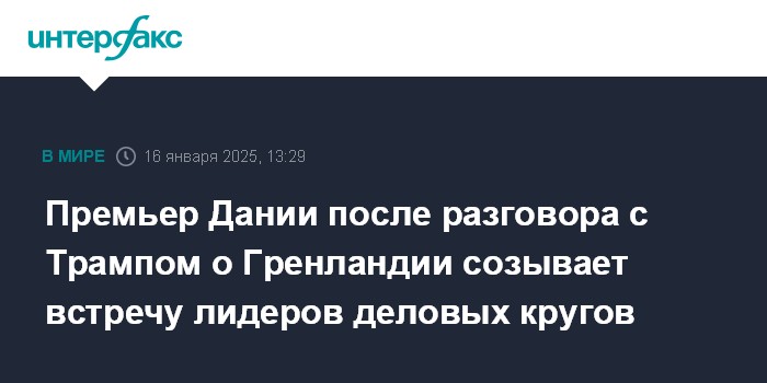 Премьер Дании после разговора с Трампом о Гренландии созывает встречу лидеров деловых кругов