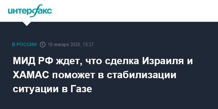 МИД РФ ждет, что сделка Израиля и ХАМАС поможет в стабилизации ситуации в Газе