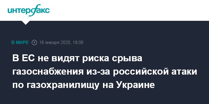 В ЕС не видят риска срыва газоснабжения из-за российской атаки по газохранилищу на Украине