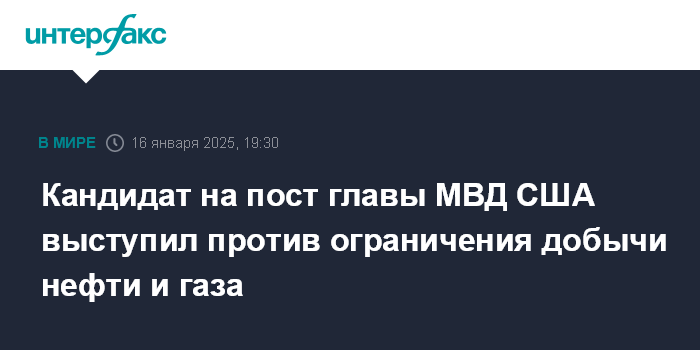 Кандидат на пост главы МВД США выступил против ограничения добычи нефти и газа