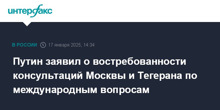 Москва. 17 января. INTERFAX.RU - Президент России Владимир Путин заявил, что консультации России и Ирана по международной повестке крайне востребованы.