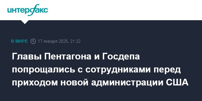 Москва. 17 января. INTERFAX.RU - Глава Пентагона Ллойд Остин и госсекретарь США Энтони Блинкен в пятницу провели торжественные церемонии по случаю их последнего рабочего дня на этих должностях.