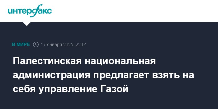 Москва. 17 января. INTERFAX.RU - Палестинская национальная администрация (ПНА) завершила подготовку к тому, чтобы взять на себя управление сектором Газа после вступления в силу соглашения о перемирии между Израилем и ХАМАС, сообщает The Times of Israel со ссылкой на канцелярию главы ПНА Махмуда Аббаса.