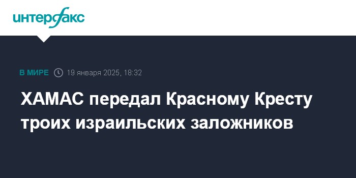 Москва. 19 января. INTERFAX.RU - Движение ХАМАС передало Красному Кресту троих заложников в рамках выполнения первой фазы соглашения с Израилем о прекращении огня.