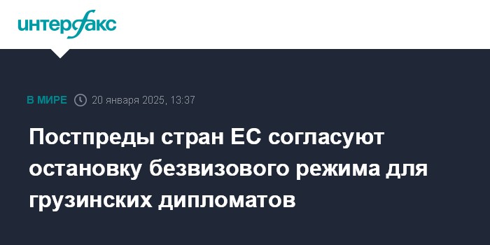 Москва. 20 января. INTERFAX.RU - Комитет постоянных представителей (Coreper) стран Евросоюза запланировал на 24 января согласование для утверждения Советом ЕС постановления об остановке безвизового режима для дипломатов и должностных лиц из Грузии.