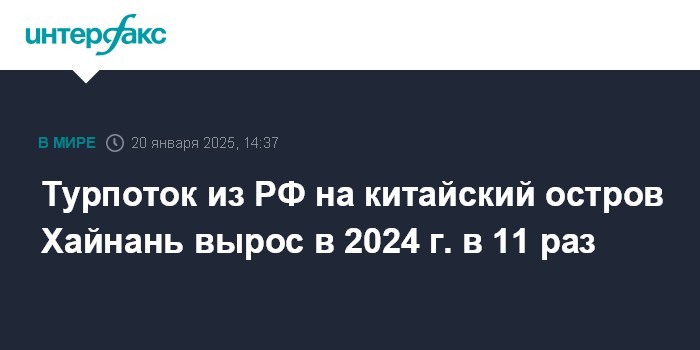Турпоток из РФ на китайский остров Хайнань вырос в 2024 г. в 11 раз