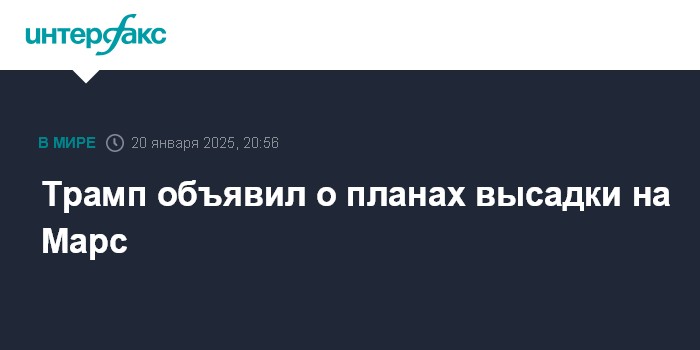 Москва. 20 января. INTERFAX.RU - Президент США Дональд Трамп во время инаугурационной речи пообещал организовать экспедицию американских астронавтов на Марс.
