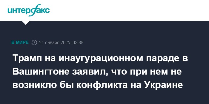 "Война на Украине никогда бы не случилась", - заявил Трамп на инаугурационном параде в Вашингтоне.