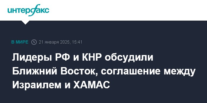 Лидеры РФ и КНР обсудили Ближний Восток, соглашение между Израилем и ХАМАС
