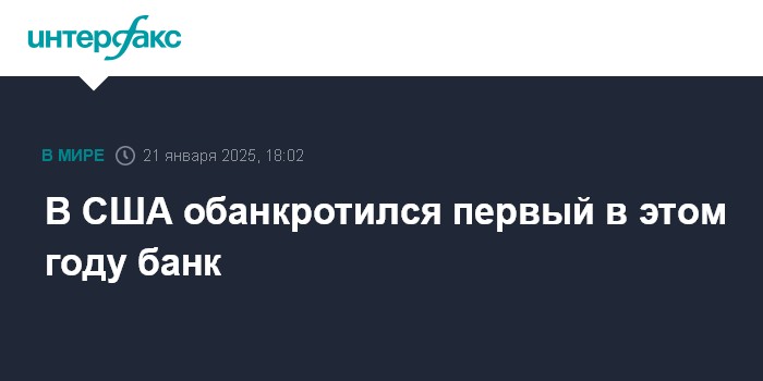 Москва. 21 января. INTERFAX.RU - Регулирующие органы американского штата Иллинойс прекратили деятельность чикагского Pulaski Savings Bank, который стал первым банком, закрытым в стране с начала 2025 года, сообщается в пресс-релизе Корпорации по страхованию депозитов США (FDIC).
