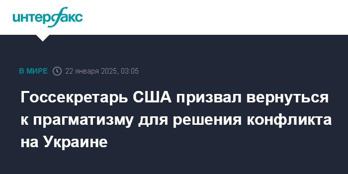 Москва. 22 января. INTERFAX.RU - Госсекретарь США Марко Рубио заявил о необходимости вернуться к прагматизму для разрешения конфликта на Украине, добавив, что в урегулировании должен участвовать Вашингтон.
