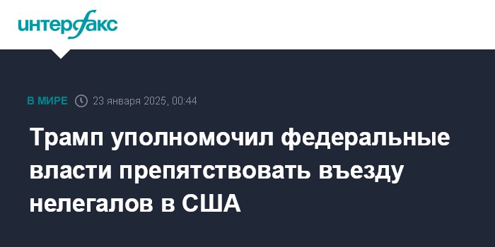 Москва. 23 января. INTERFAX.RU - Президент США Дональд Трамп в ночь на четверг подписал указ, дающий возможность федеральным властям принимать меры против пересечения нелегальными мигрантами южной границы страны.
