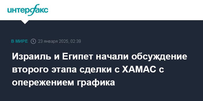 Израиль и Египет начали обсуждение второго этапа сделки с ХАМАС с опережением графика