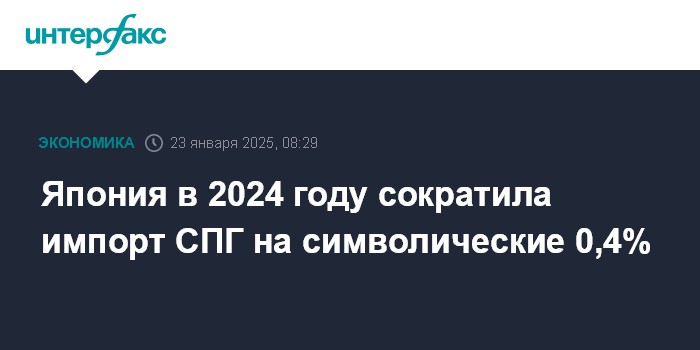 Япония в 2024 году сократила импорт СПГ на символические 0,4%