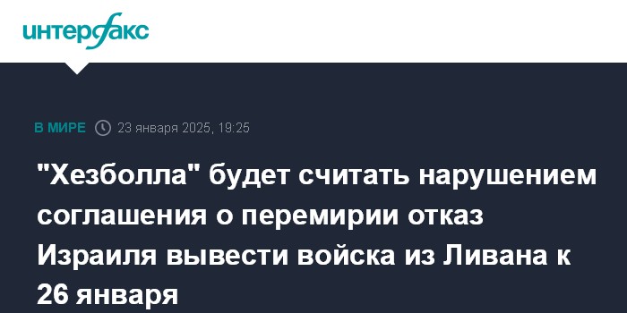 "Хезболла" будет считать нарушением соглашения о перемирии отказ Израиля вывести войска из Ливана к 26 января