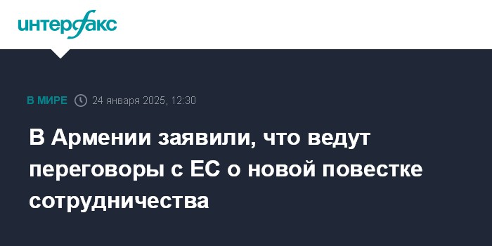 Москва. 24 января. INTERFAX.RU - Армения и ЕС проводят переговоры по подписанию новой повестки сотрудничества, заявил замглавы МИД республики Паруйр Ованнисян.