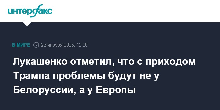 Москва. 26 января. INTERFAX.RU - Президент Белоруссии Александр Лукашенко высказал убеждение, что приход к власти в США Дональда Трампа не создаст проблем республике, их стоит ожидать странам Евросоюза.