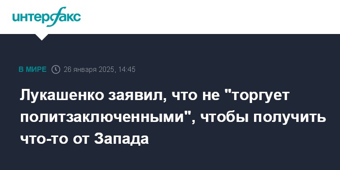 Москва. 26 января. INTERFAX.RU - Власти Белоруссии освобождают политзаключенных исходя из принципов гуманности, а не для того, чтобы выторговать что-то у Запада, заявил президент республики Александр Лукашенко.